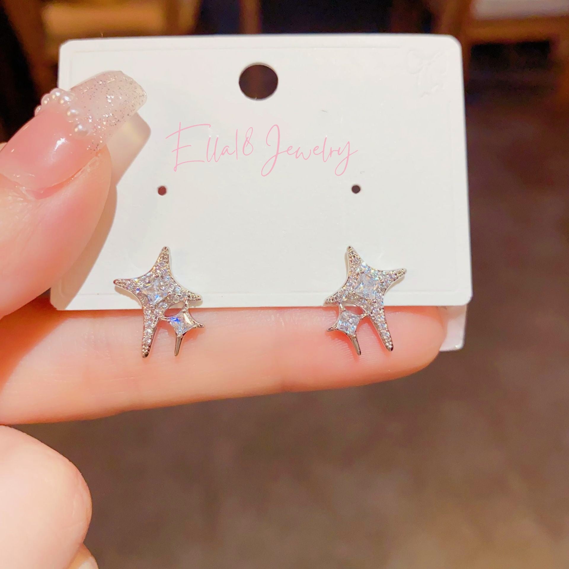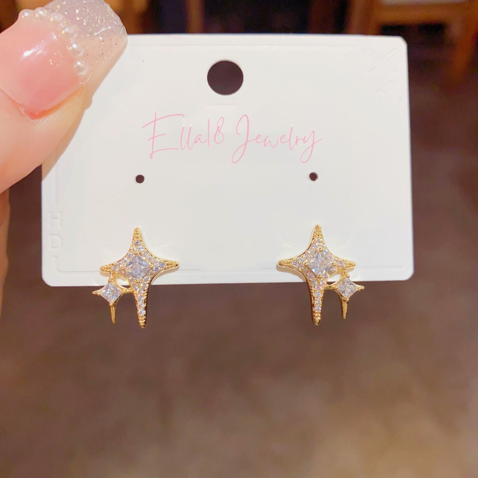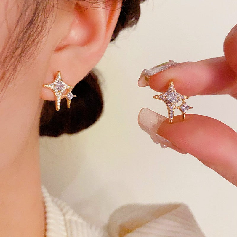 14K Gold-Plated Super Flash Zircon Star Earrings