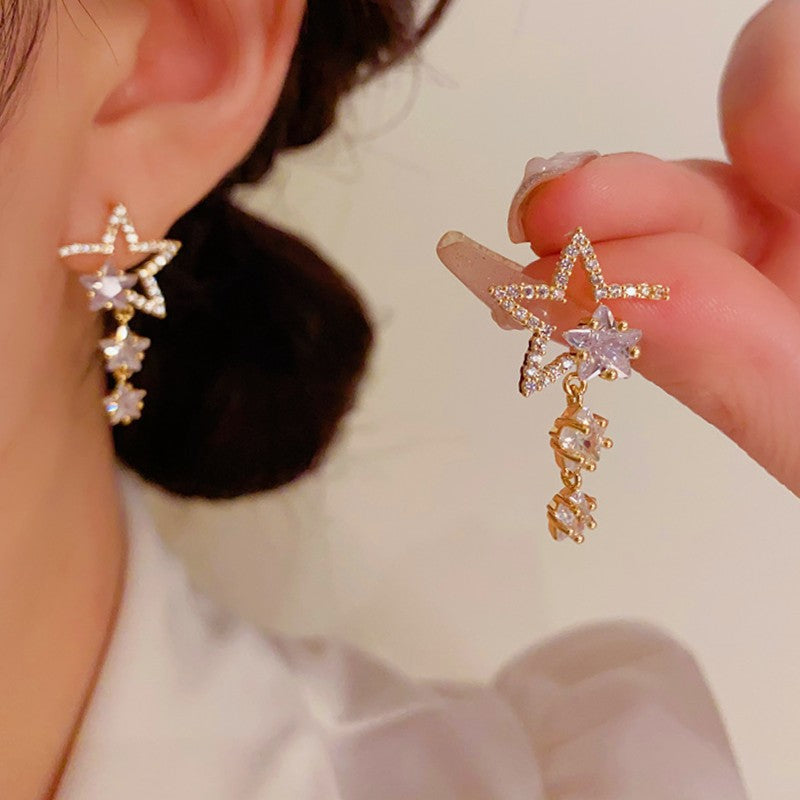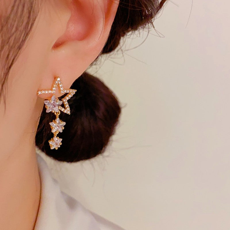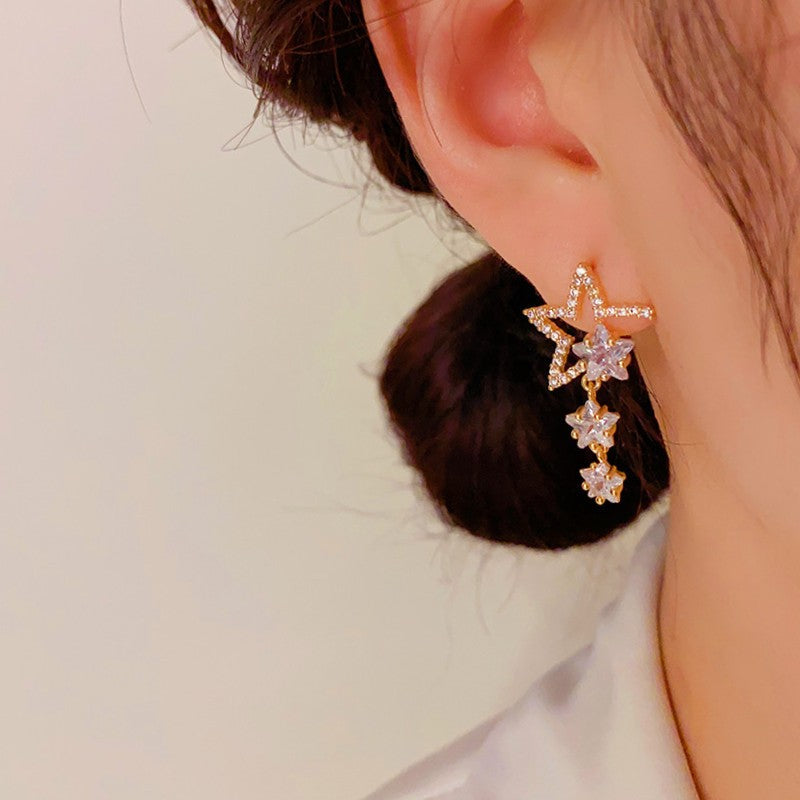 14K Gold-Plated Unique Design Exquisite Zircon Star Earrings