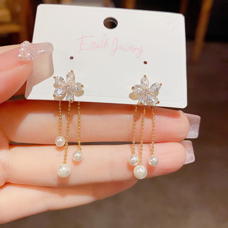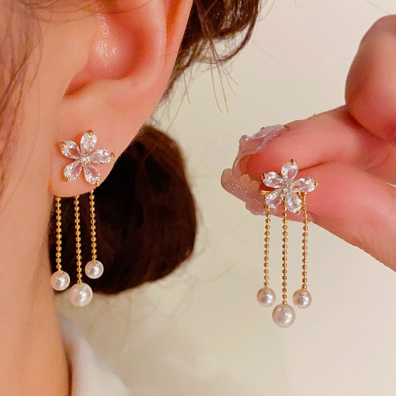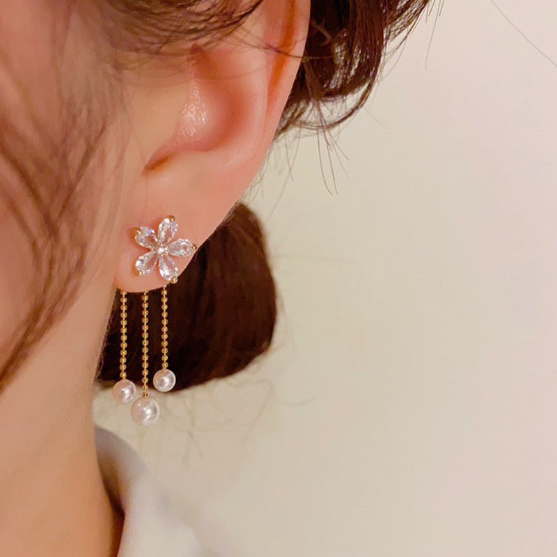 14K Gold-Plated Unique Design Sweet Zircon Flower Earrings