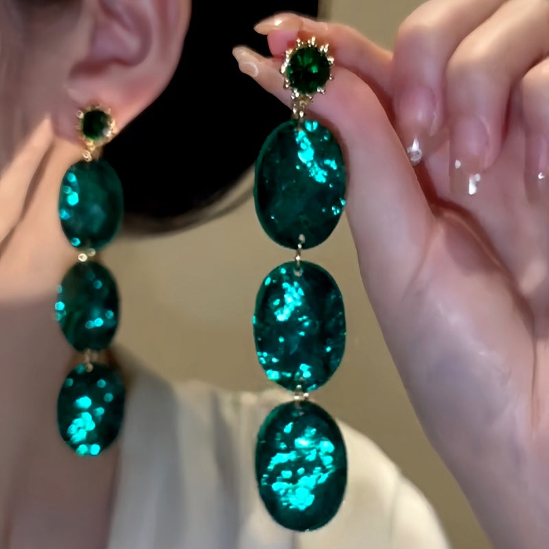 14K Gold-Plated Vintage Emerald Diamond Oval Earrings