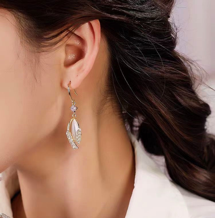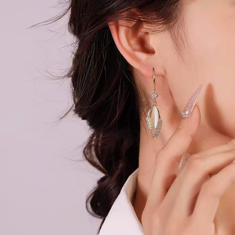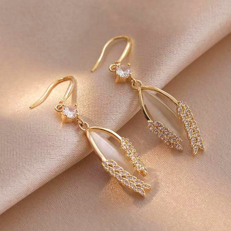 14K Gold-plated Wheat Leaf Cat's Eye Stone Earrings
