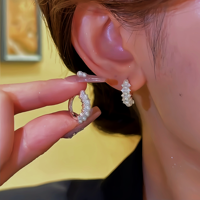 14K Gold-plated Zircon And Shell Bead Small Hoop Earrings