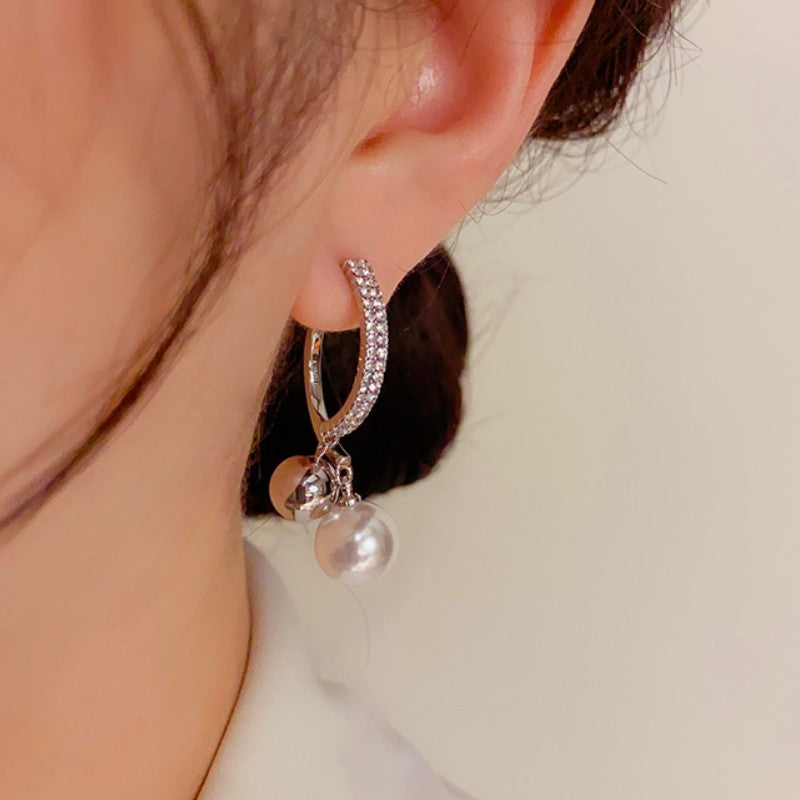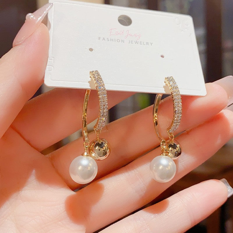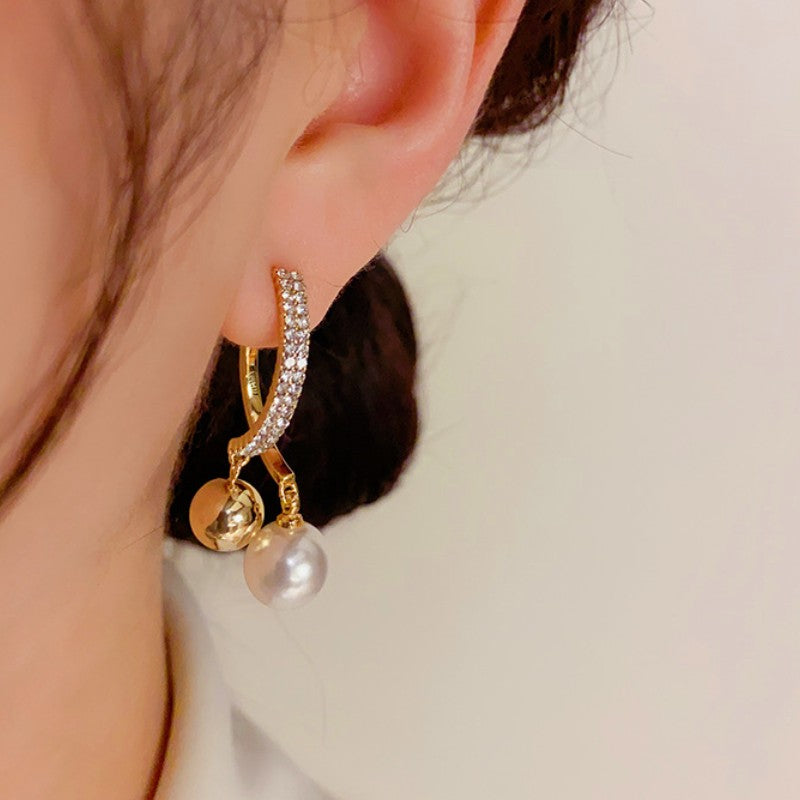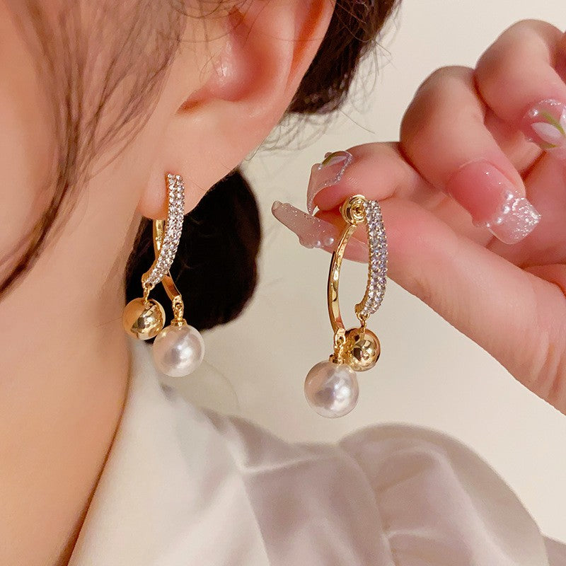 14K Gold-plated Zircon Artificial Pearl Earrings