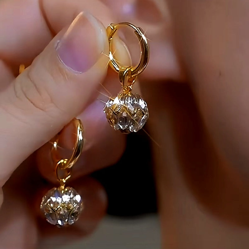 14K Gold-Plated Zircon Ball Earrings