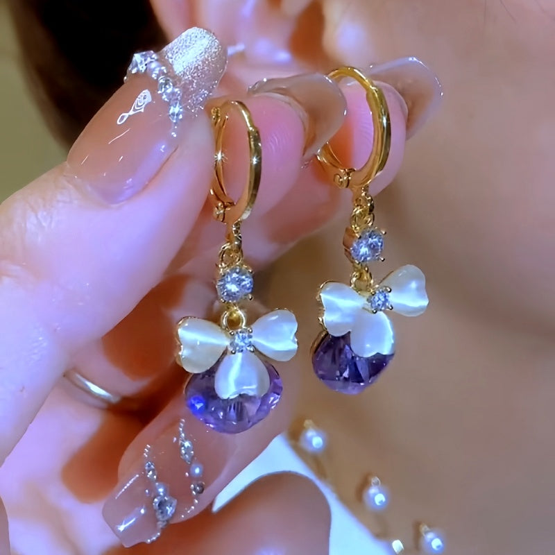 14K Gold-plated Zircon Ball Tassel Bow Earrings