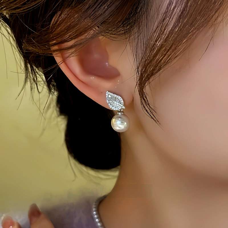 14K Gold-Plated Zircon Bead Leaf Earrings