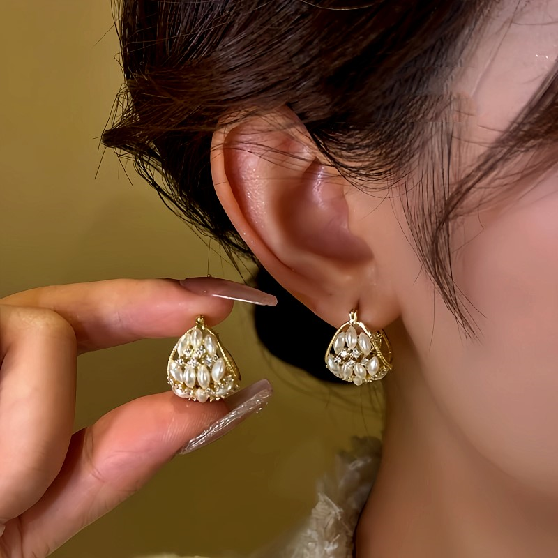 14K Gold-Plated Zircon Beaded Flower Basket Earrings