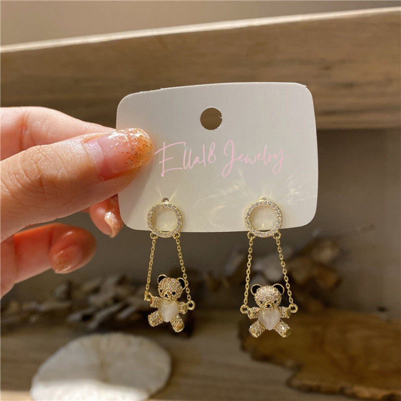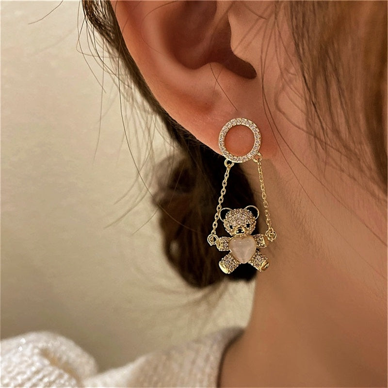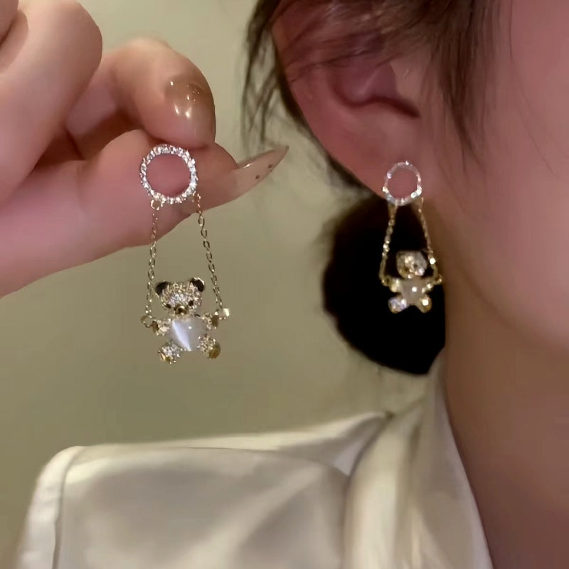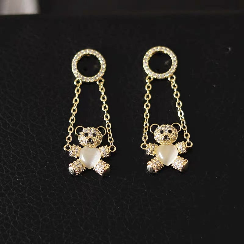 14K Gold-Plated Zircon Bear Swing Earrings