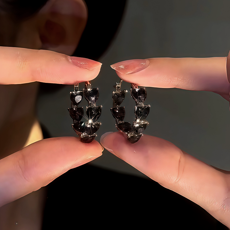 14K Gold-Plated Zircon Black Heart Hoop Earrings
