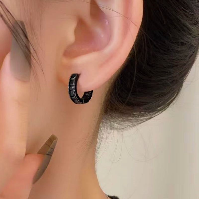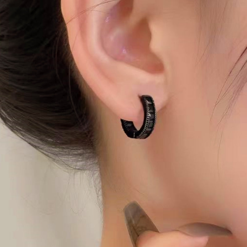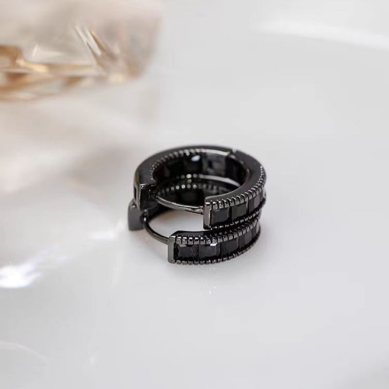 14K Gold-Plated Zircon Black Hoop Earrings