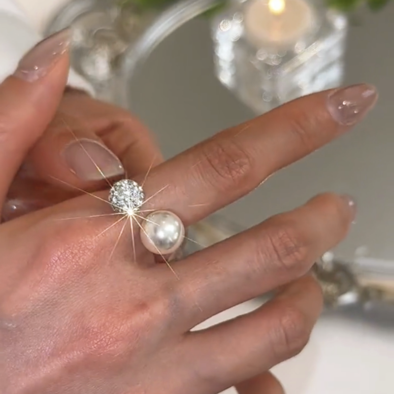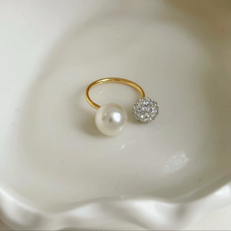 14K Gold Plated Zircon Bling Ball Pearl Adjustable Rings