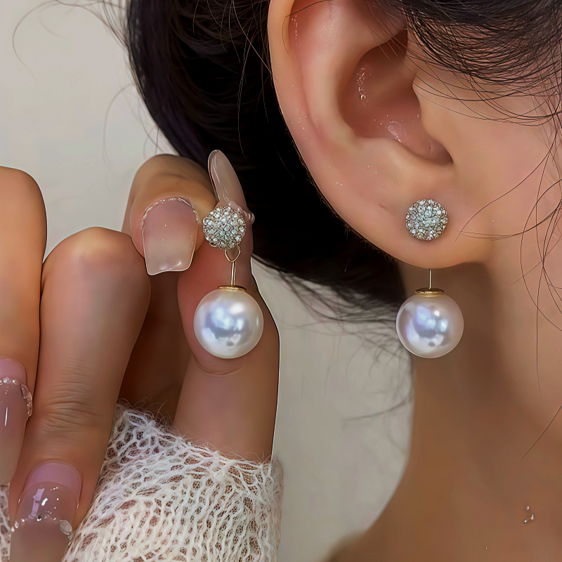 14K Gold-Plated Zircon Bling Ball Pearl Earrings