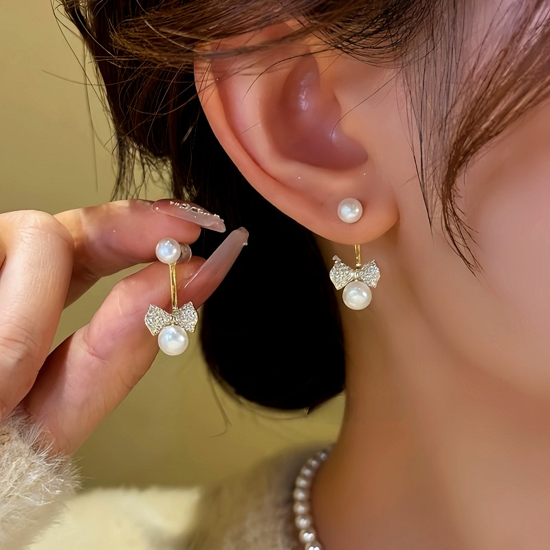 14K Gold-Plated Zircon Bow Bead Jacket Earrings