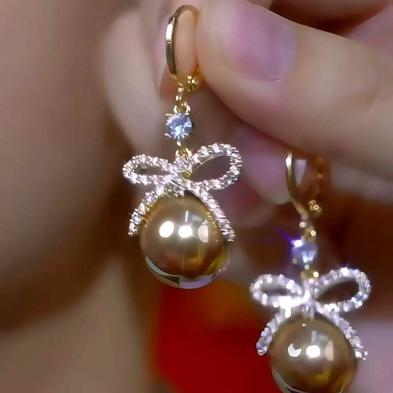 14K Gold-Plated Zircon Bow Brown Pearl Earrings