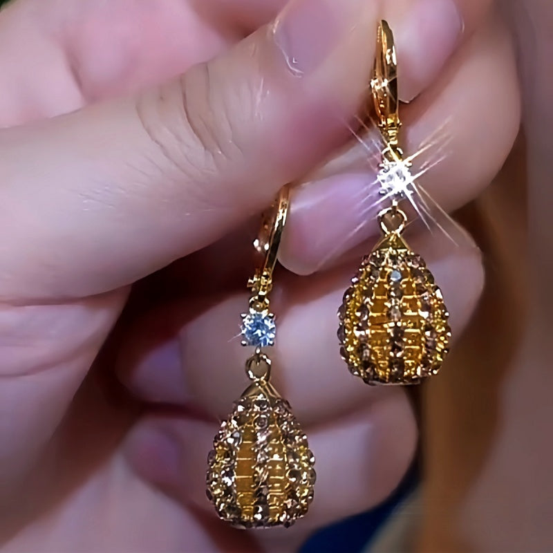 14K Gold-Plated Zircon Brown Diamond Water Drop Earrings