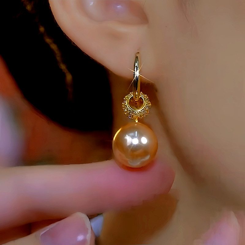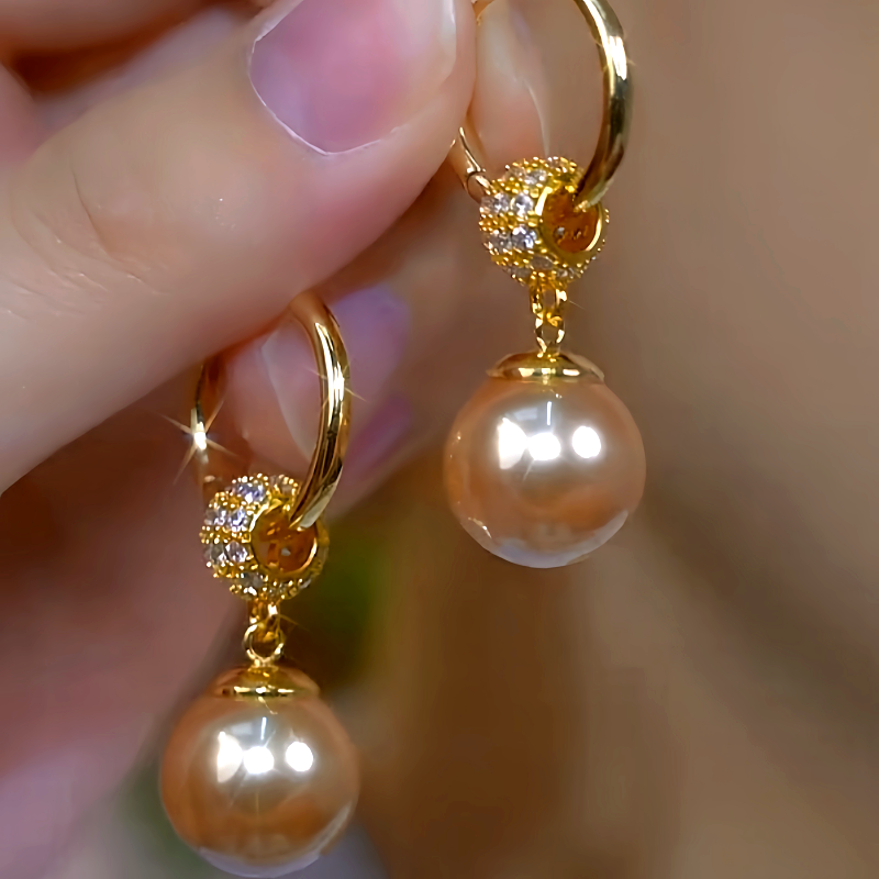14K Gold-Plated Zircon Brown Pearl Earrings And Necklace