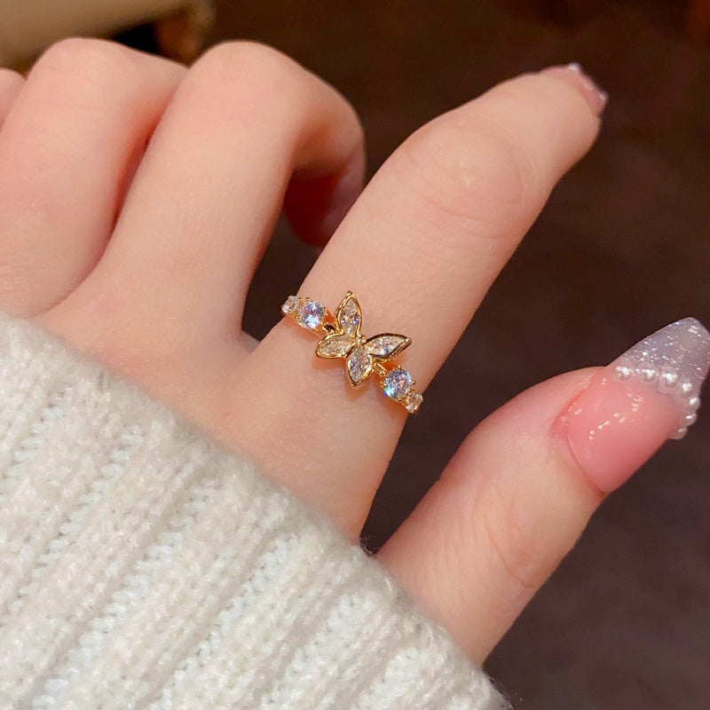 14K Gold Plated Zircon Butterfly Adjustable Rings