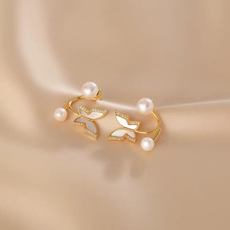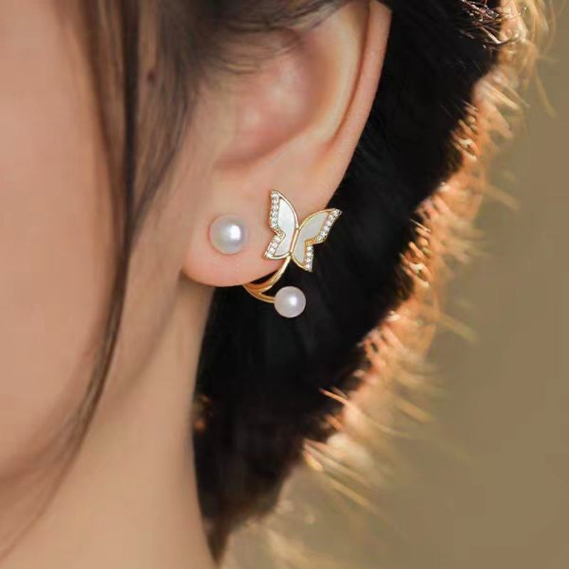 14K Gold-Plated Zircon Butterfly Pearl Earrings