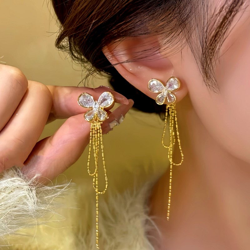 14K Gold-plated Zircon Butterfly Tassel Earrings