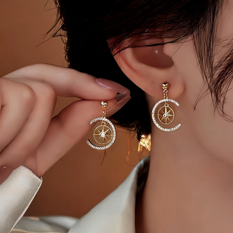 14K Gold-Plated Zircon C-Shaped Star Earrings