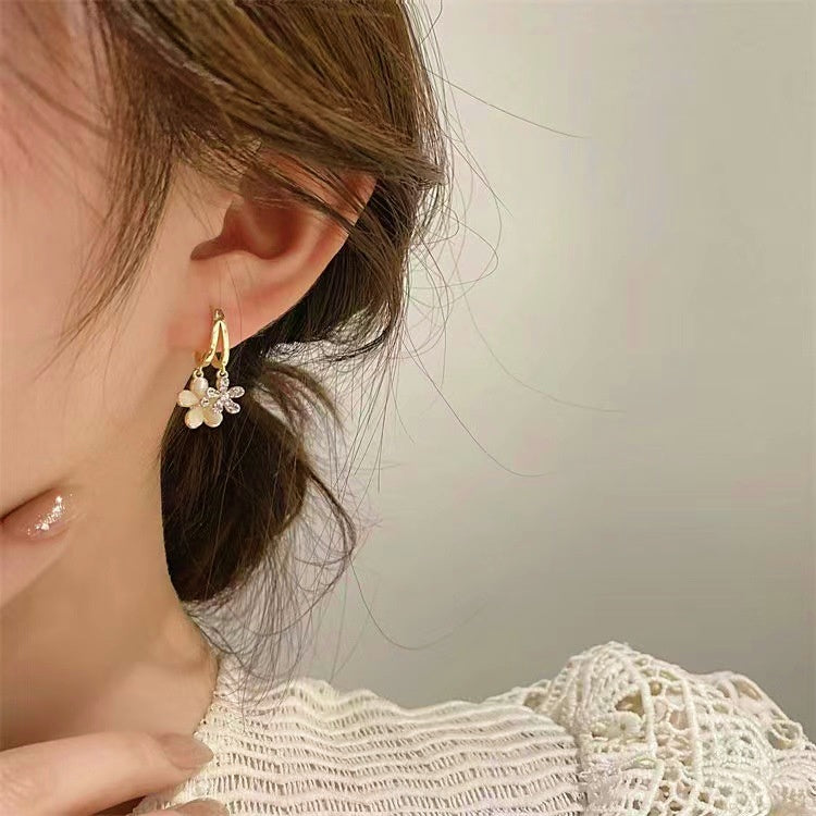 14K Gold-plated Zircon Cat Eye Double Flower Earrings