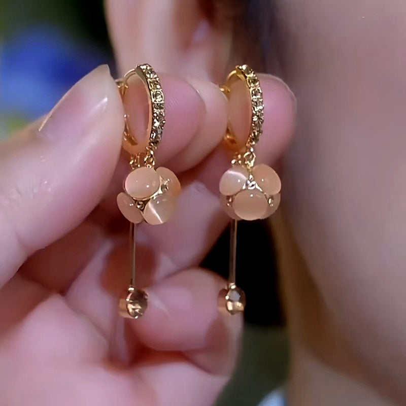 14K Gold-Plated Zircon Cat's Eye Stone Ball Tassel Earrings