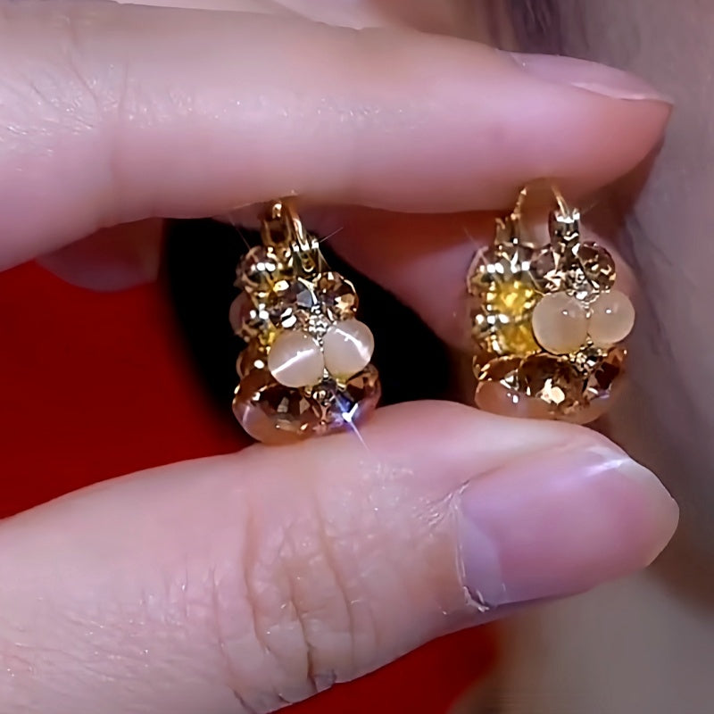 14K Gold-Plated Zircon Cat's Eye Stone Basket Earrings