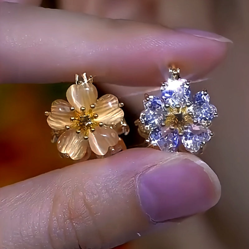 14K Gold-Plated Zircon Cat's Eye Stone Flower Earrings