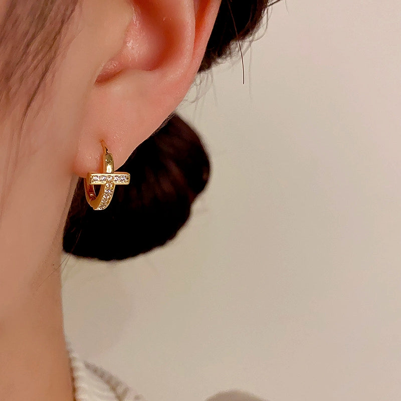 14K Gold-Plated Zircon Cross Hoop Earrings