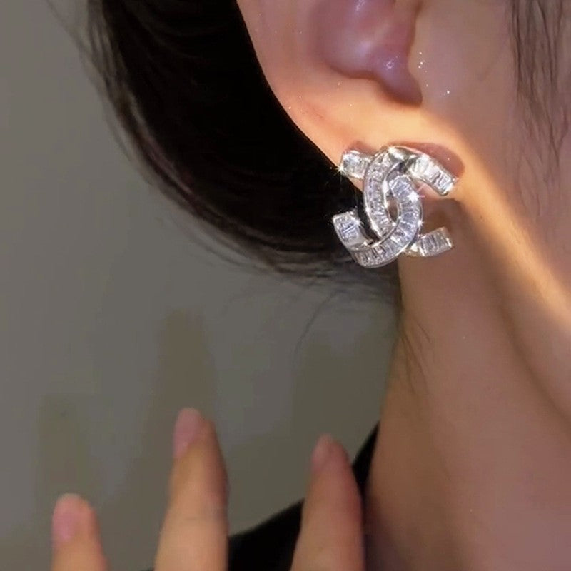 14K Gold-Plated Zircon Crossed Stud Earrings