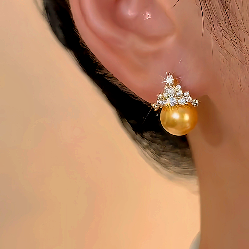 14K Gold-plated Zircon Crown Stud Earrings