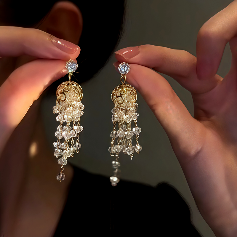 14K Gold-Plated Zircon Crystal jellyfish Tassel Earrings