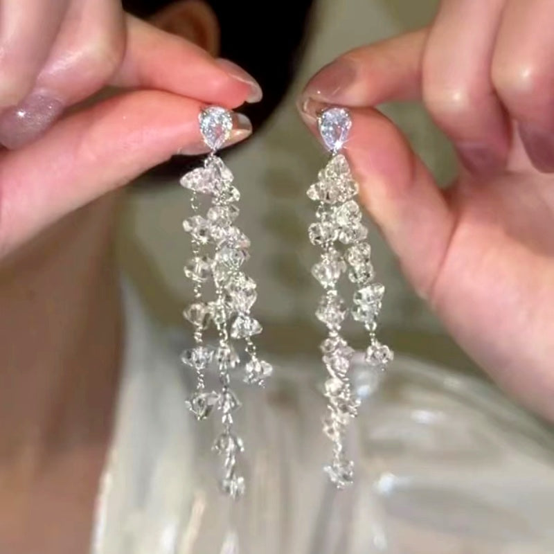 14K Gold-Plated Zircon Crystal Tassel Earrings