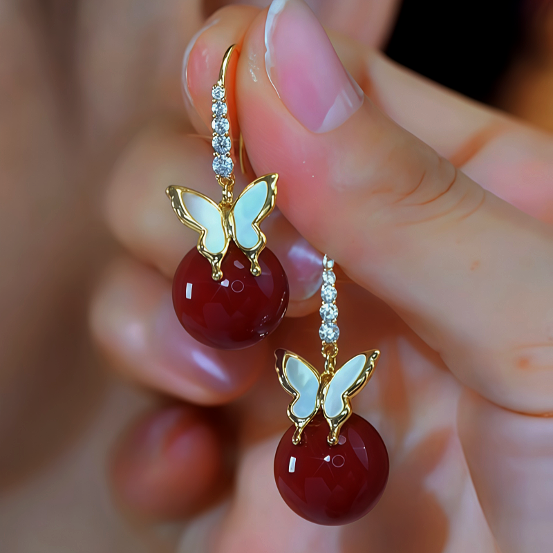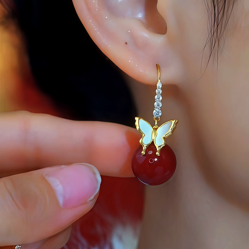 14K Gold-Plated Zircon Diamond Butterfly Bead Ear Hooks