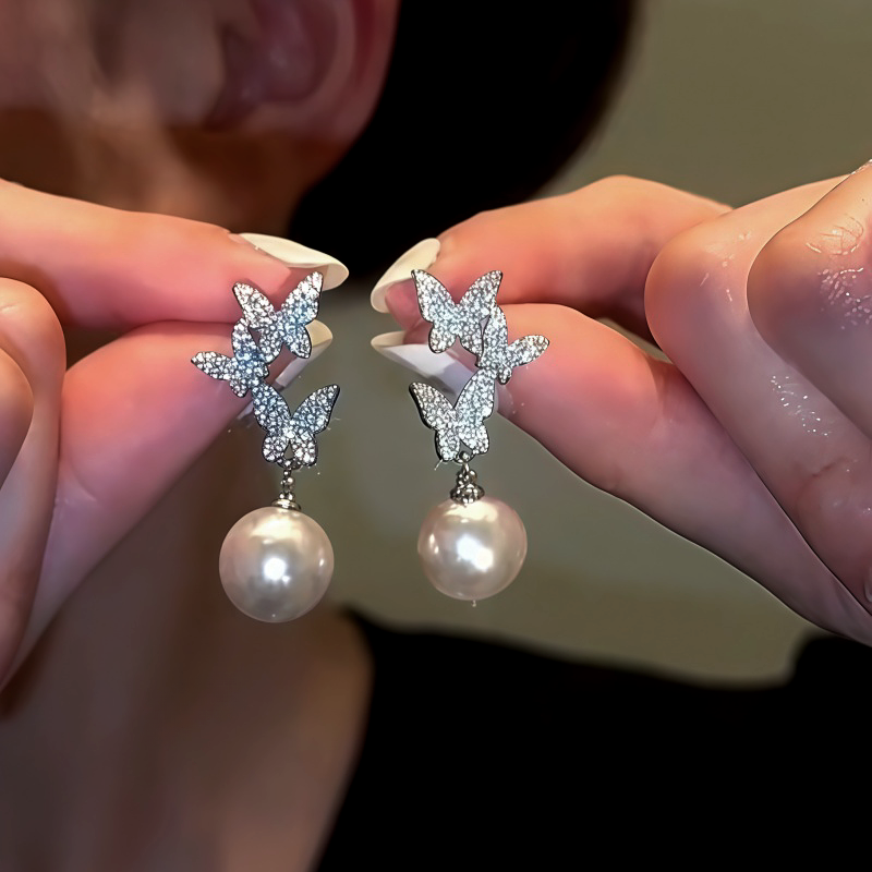 14K Gold-Plated Zircon Diamond Butterfly Tassel Earrings