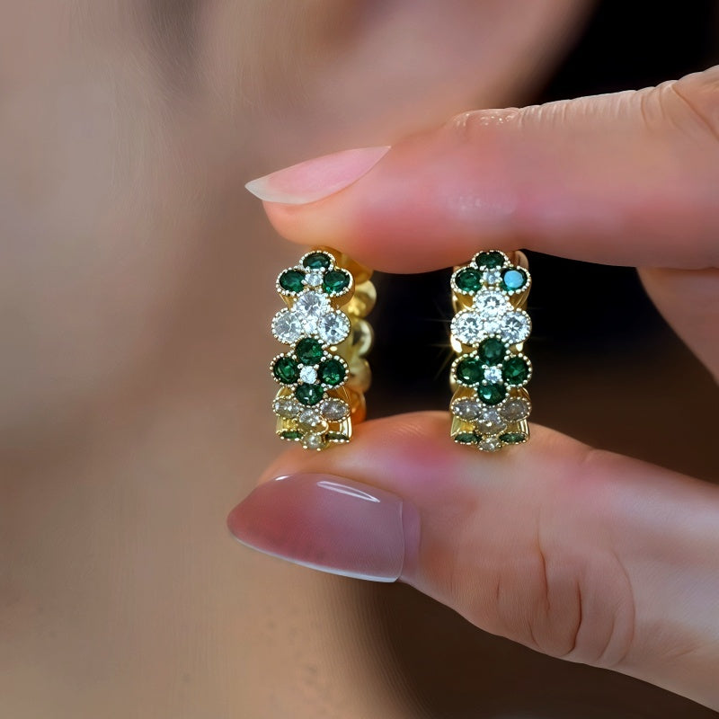 14K Gold-Plated Zircon Diamond Four-Leaf Flower Hoop Earrings