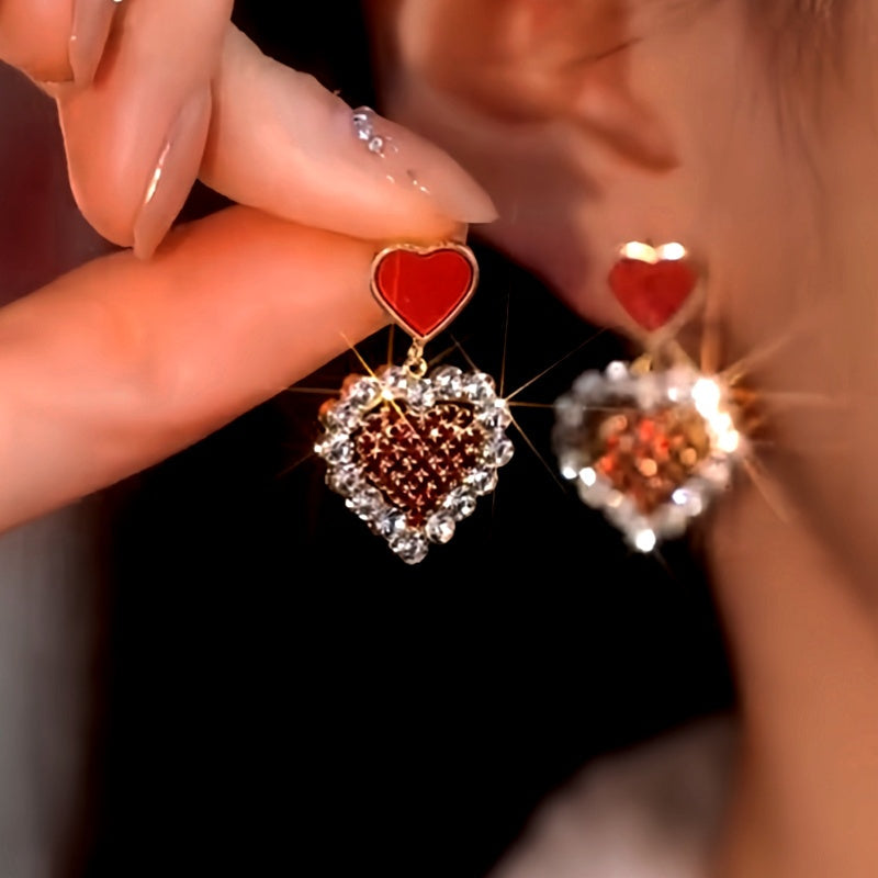 14K Gold-Plated Zircon Diamond Heart Earrings