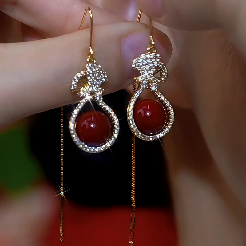 14K Gold-Plated Zircon Diamond Lucky Bag Pearl Threader Earrings