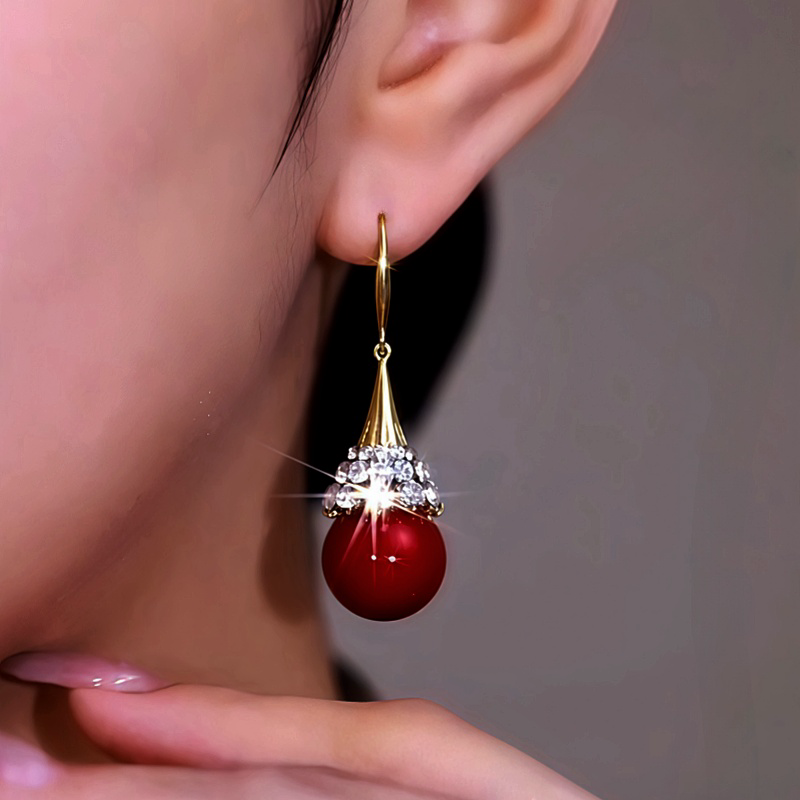 14K Gold-Plated Zircon Diamond Pearl Ear Hook Earrings