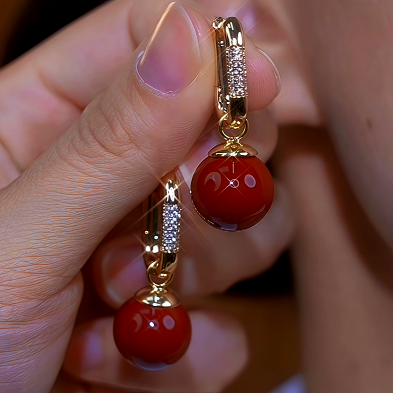 14K Gold-Plated Zircon Diamond Red Pearl Earrings