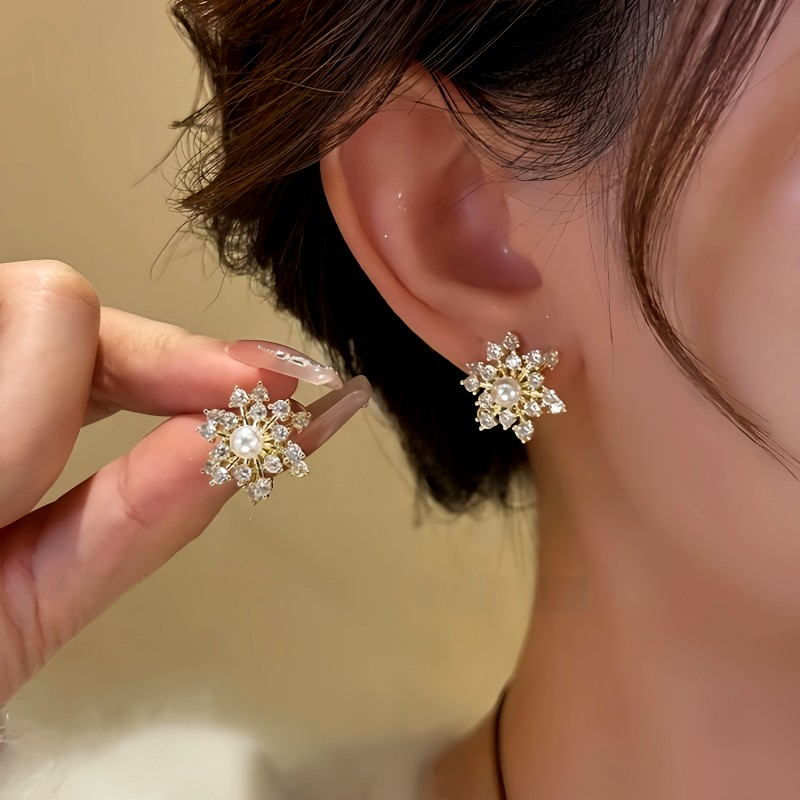 14K Gold-Plated Zircon Diamond Rotating Snowflake Earrings