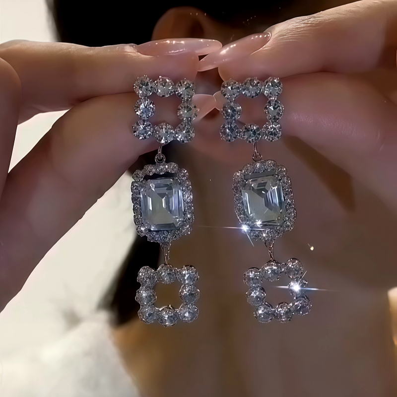 14K Gold-Plated Zircon Diamond Tassel Earrings