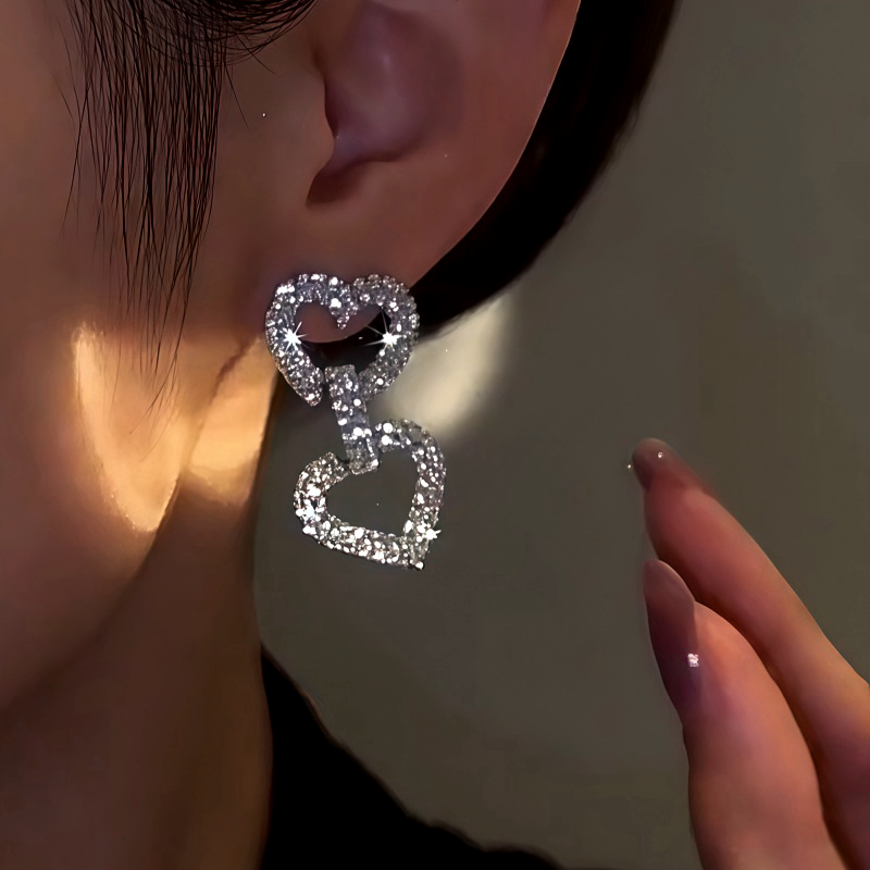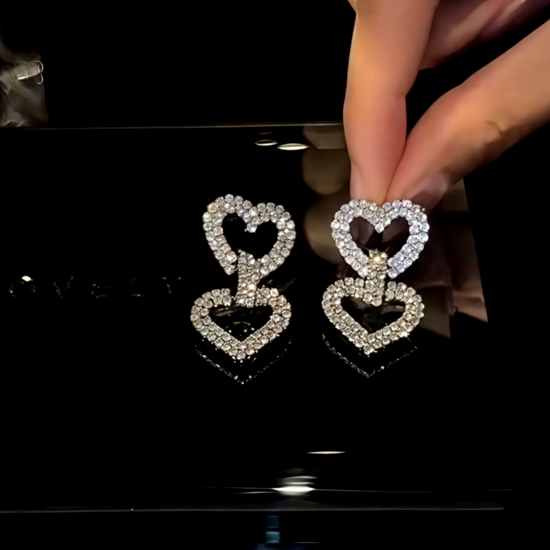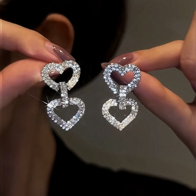 14K Gold-Plated Zircon Double-Heart Earrings