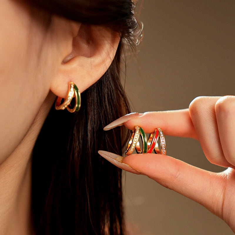 14K Gold-Plated Zircon Double-Layer Hoop Earrings