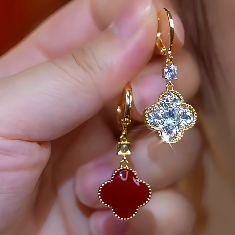 14K Gold-Plated Zircon Double-Sided Four-Leaf Clover Earrings