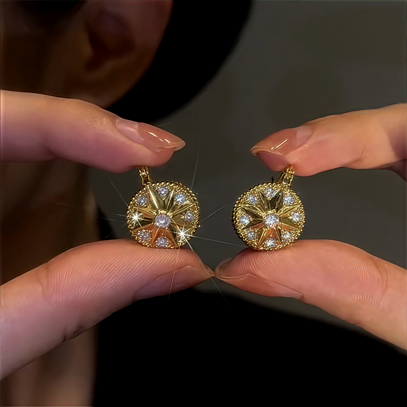 14K Gold-Plated Zircon Eight-Pointed Star Compass Earrings