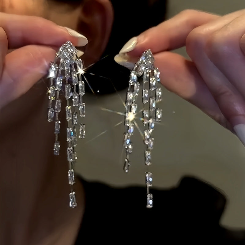 14K Gold-Plated Zircon Firework Tassel Earrings