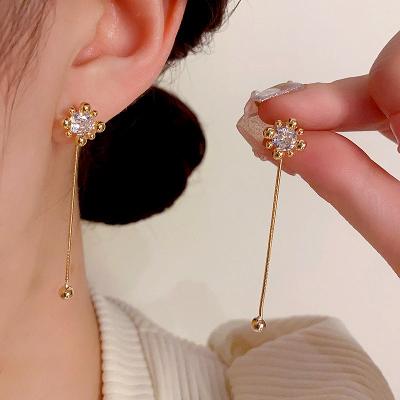 14K Gold-Plated Zircon Fireworks Tassel Two-Wear Earrings