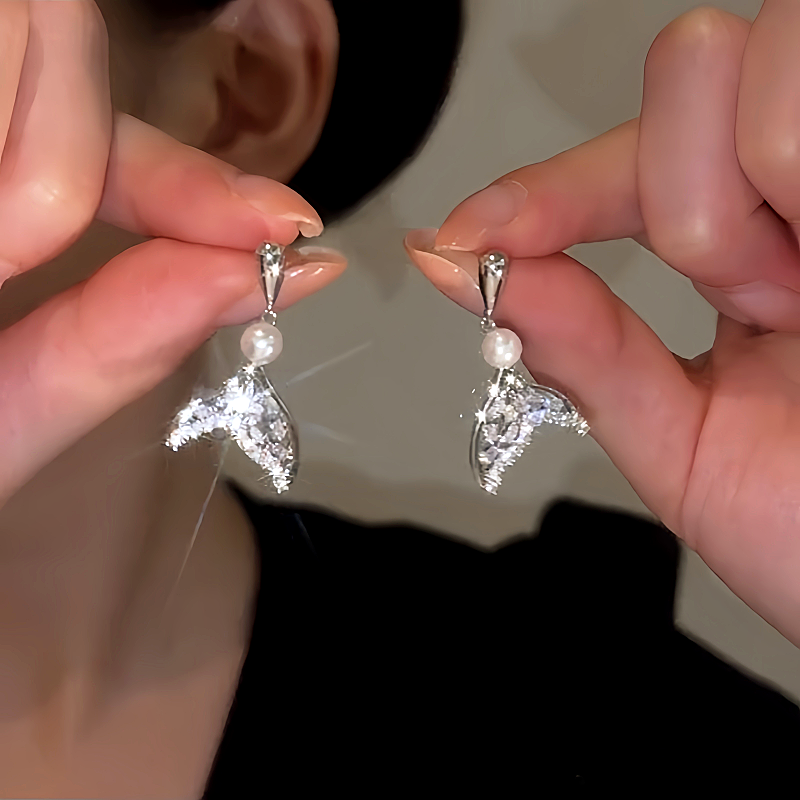 14K Gold-plated Zircon Fishtail Pearl Earrings