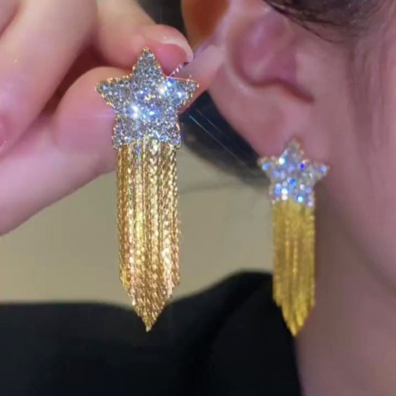 14K Gold-plated Zircon Five-Pointed Star Earrings